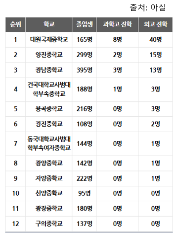 - 중학교: 자양중, 광남중